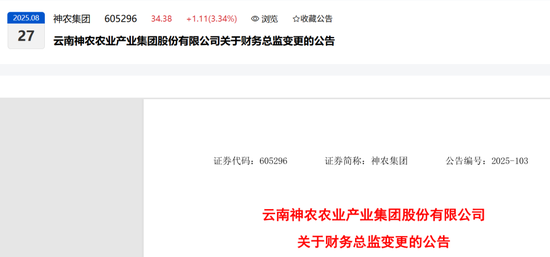 2025-08-27神农集团:云南神农农业产业集团股份有限公司关于财务总监变更的公告